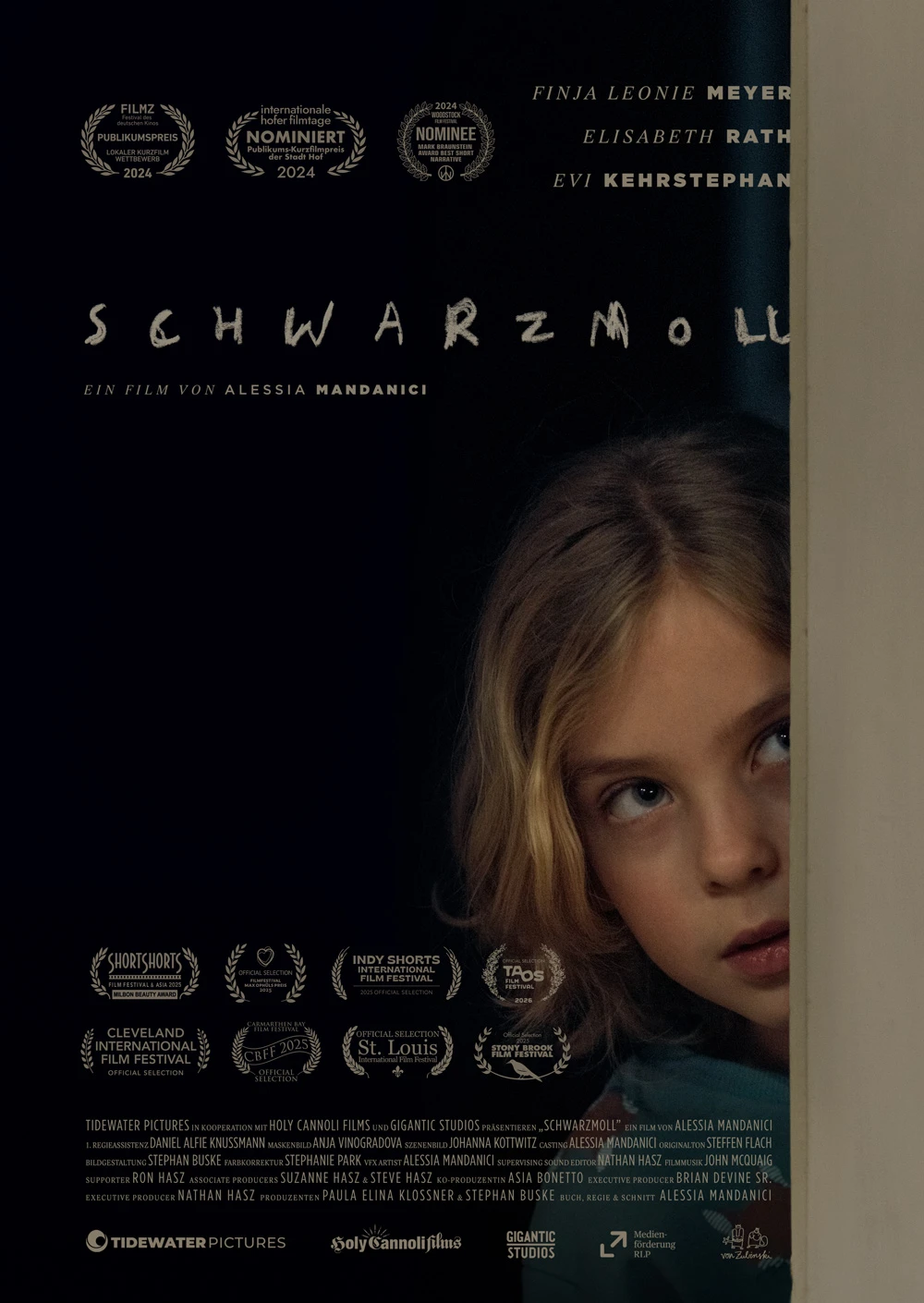 Written, directed, edited, casting by Alessia MandaniciPRODUCED BY Tidewater PicturesHoly Cannoli FilmsGigantic StudiosGENRE / LENGTH Family Drama19 minWITH Finja Leonie MeyerFinja Leonie MayerElisabeth RathEvi KehrstephanElisabeth RathEvi Kehrstephan A seven-year-old girl sets out to justify the mysterious world of her dementia-suffering grandmother. BEHIND THE SCENES Festivals / Awards25th Annual Woodstock Film Festival 2024 (Oscar qualifying)Nominee Mark Braunstein Award for Best Narrative Short58th Hof International Film Festival 2024Nominee Best Short Audience Award23rd FILMZ Festival des deutschen Kinos 2024Winner Best Local Short Audience Award33rd Annual St. Louis International Film Festival 2024 (Oscar qualifying)46th Filmfestival Max Ophüls Preis 202513th Carmarthen Bay Film Festival 2025 (BAFTA qualifying)26th Short Shorts Film Festival & Asia 2025 (Oscar Qualifying)Nominee Milbon Beauty Award30th Stony Brook Film Festival 20258th Annual Indy Shorts Film Festival 2025 (Oscar qualifying)Nominee Narrative Short Grand Prize 50th Cleveland International Film Festival (Oscar qualifying)FilmSlam Streams® Education Program (Online only)Taos Film Festival 2026 Grants2022 Production Grant / Film and Media Commission Rhineland-Palatinate, Germany MORE OFFICIAL WEBSITEIMDBINSTAGRAM